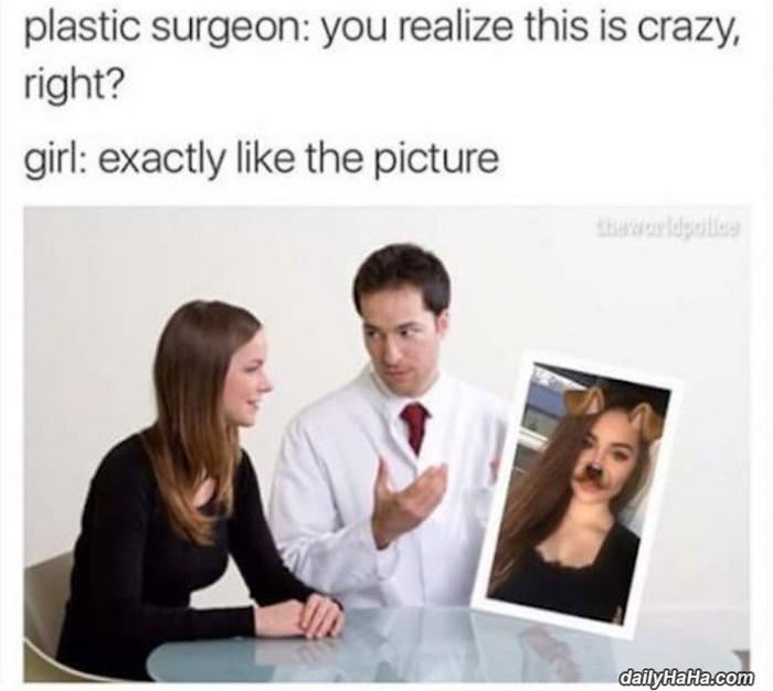 You realize this is crazy right Can you make me look like that or no.