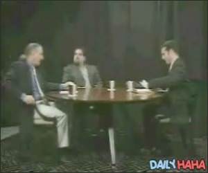 This guy here pukes on live TV during an interview.