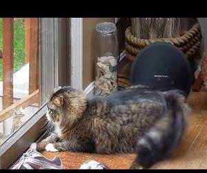 Chipmunk Taunts Cat Through A Glass Door